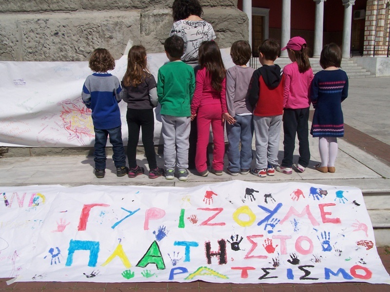 Γιατί: Όλοι μαζί είναι πιο ωραία (σύνθημα που έγραψαν οι γονείς των Προπρονηπιών στον κήπο μας)